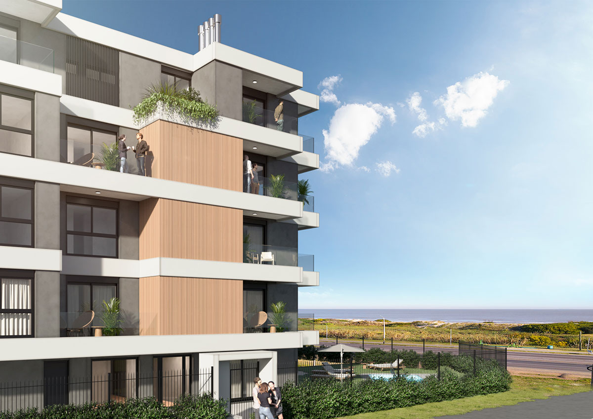 23 unidades monoambiente, 1, 2 y 3 dormitorios con terrazas y vistas al mar.